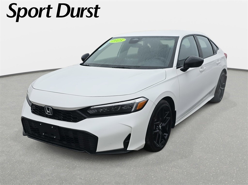 Come See This 2025 Platinum White Pearl Honda Civic Sport FWD and many more at Sport Durst Automotive today!